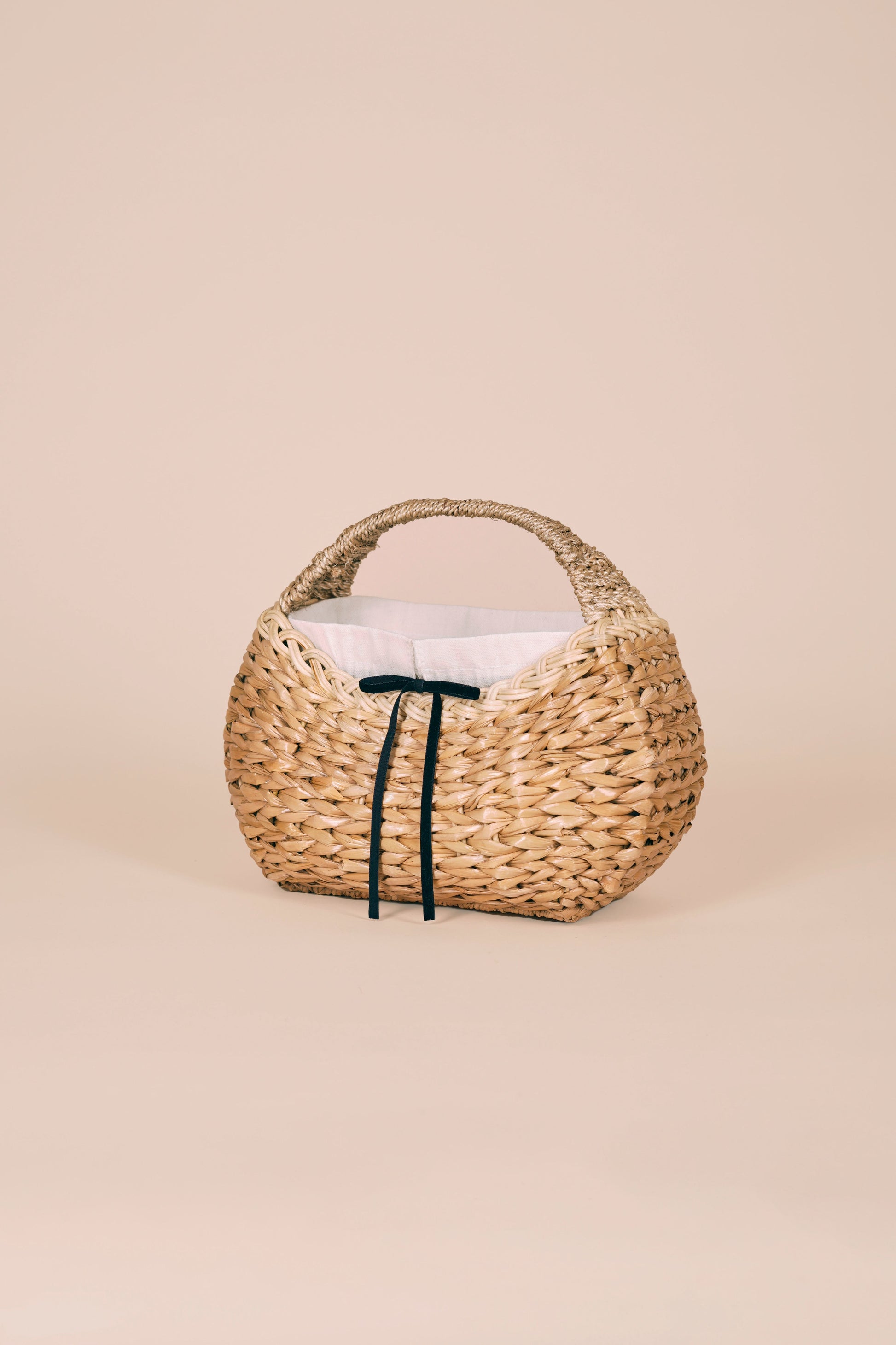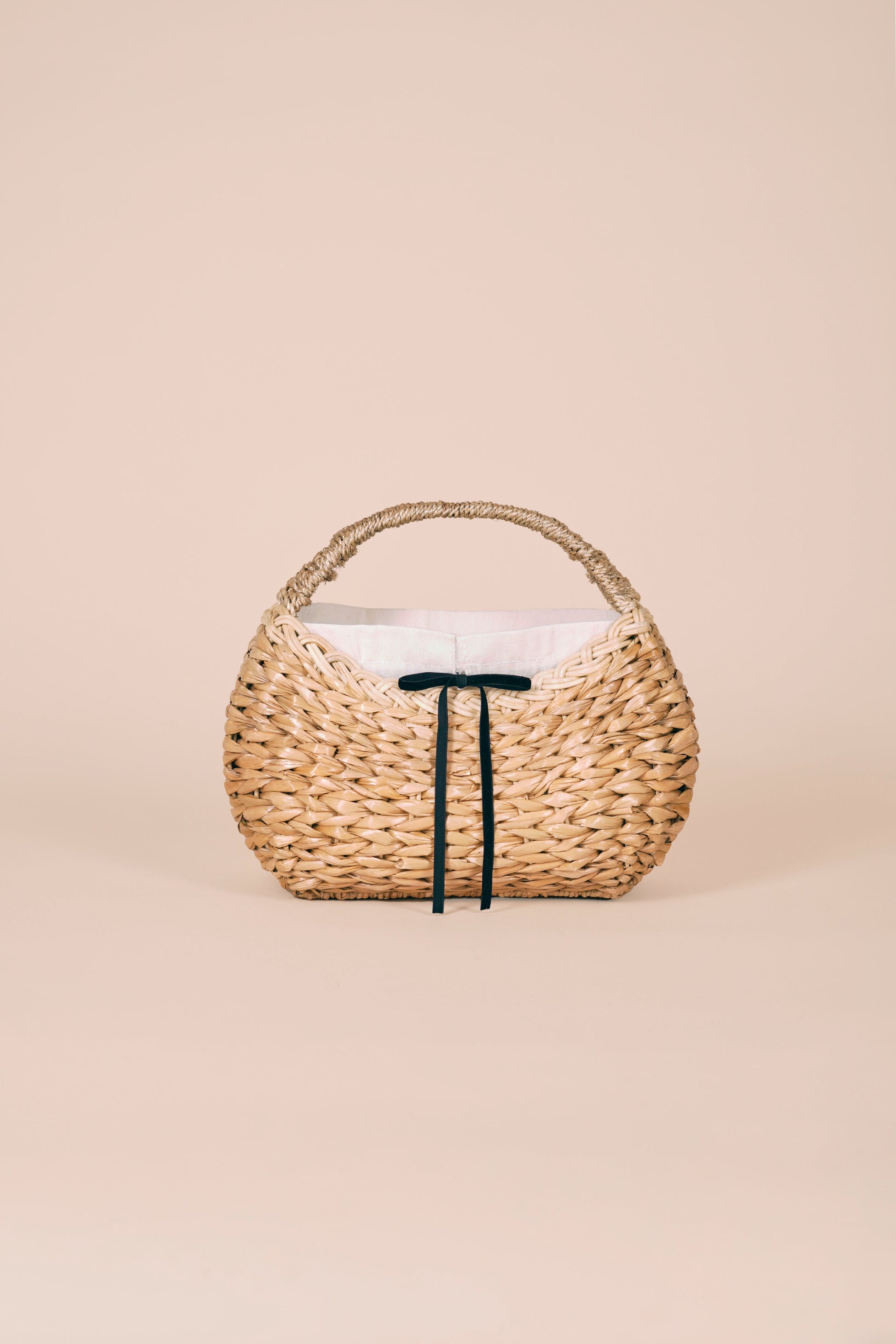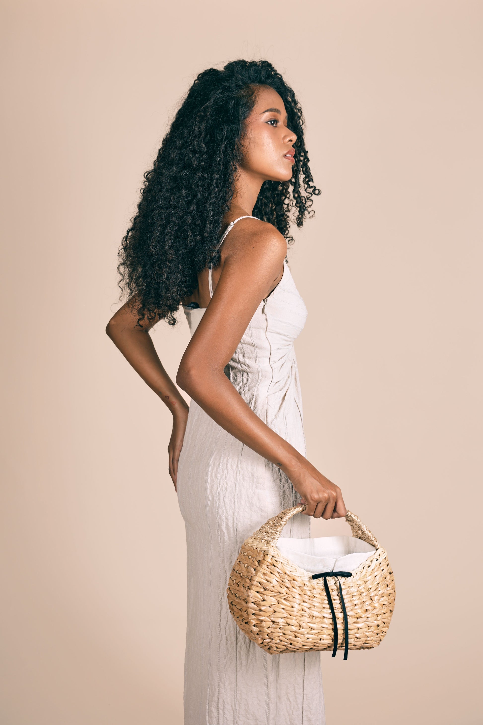 The Bassett – a structured handbag crafted from water hyacinth (bancuang) sourced from Pampanga, handwoven in a sibat weave and accentuated with a rattan top edge. She is reinforced with a lightweight steel frame.