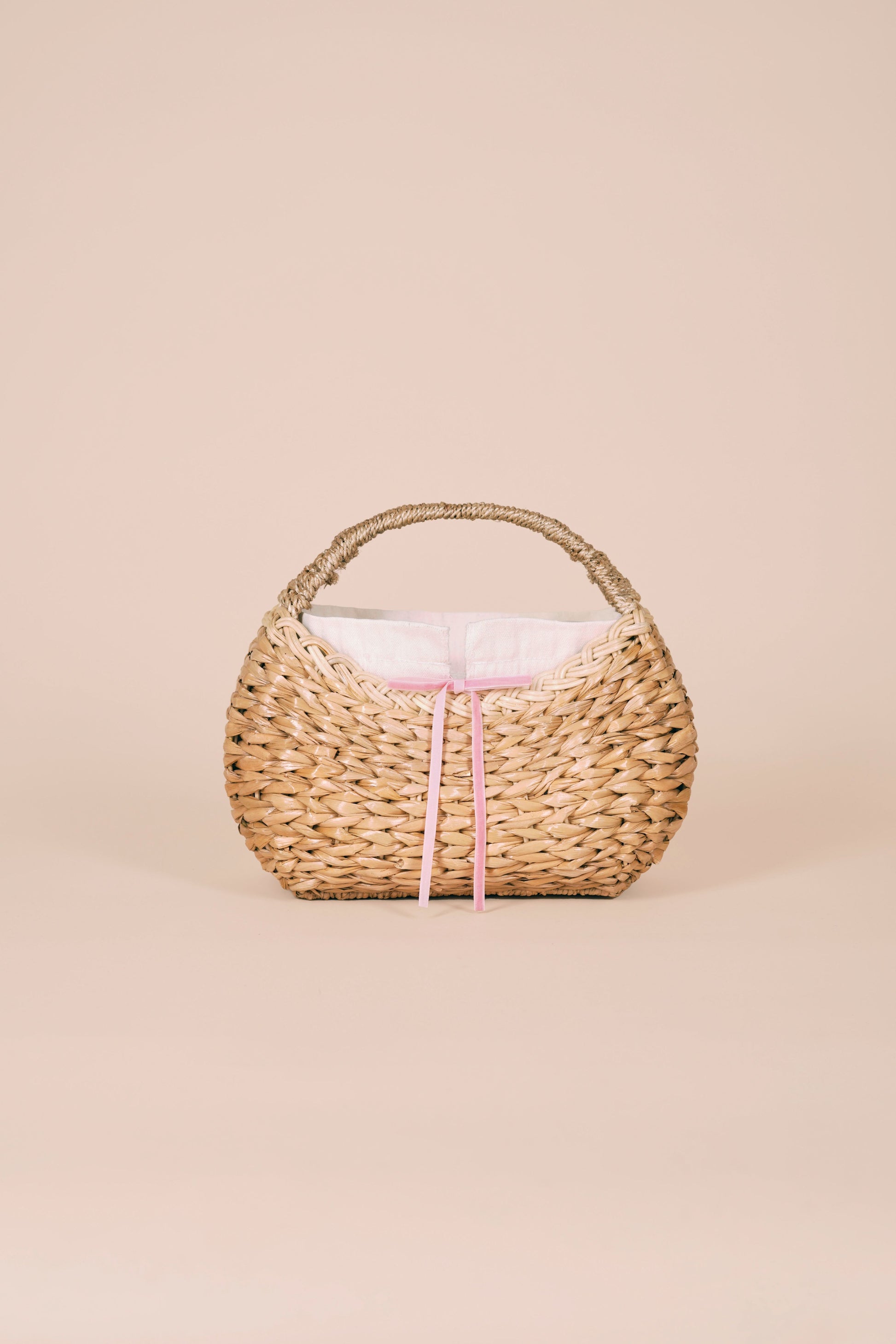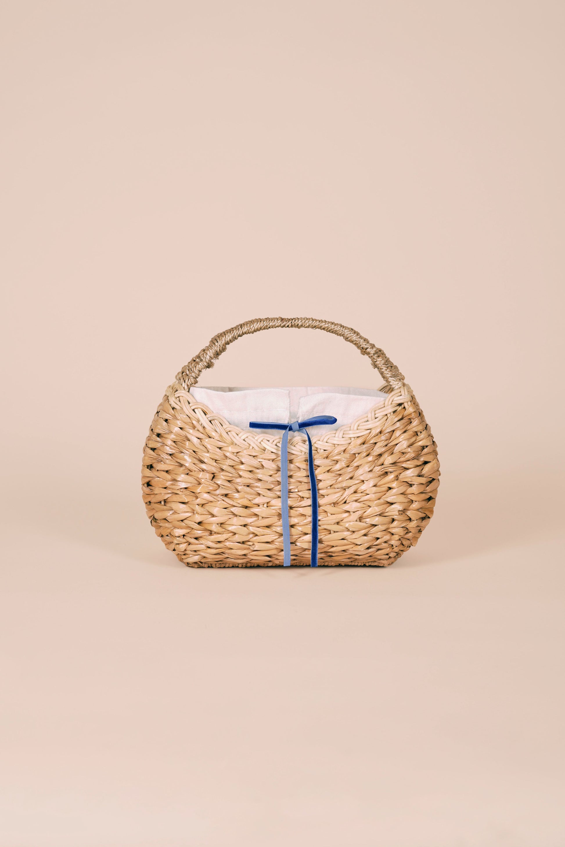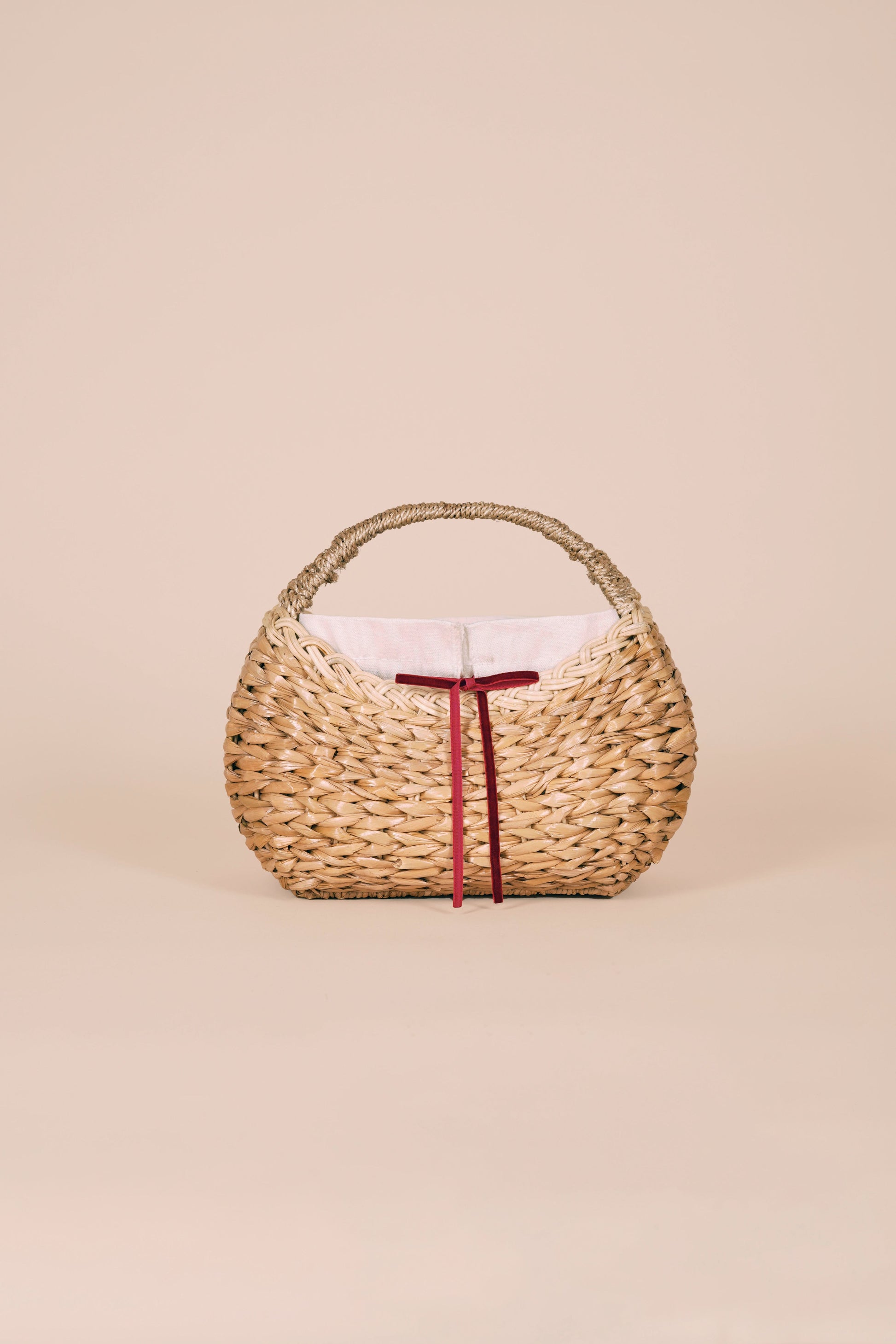 The Bassett – a structured handbag crafted from water hyacinth (bancuang) sourced from Pampanga, handwoven in a sibat weave and accentuated with a rattan top edge. She is reinforced with a lightweight steel frame.