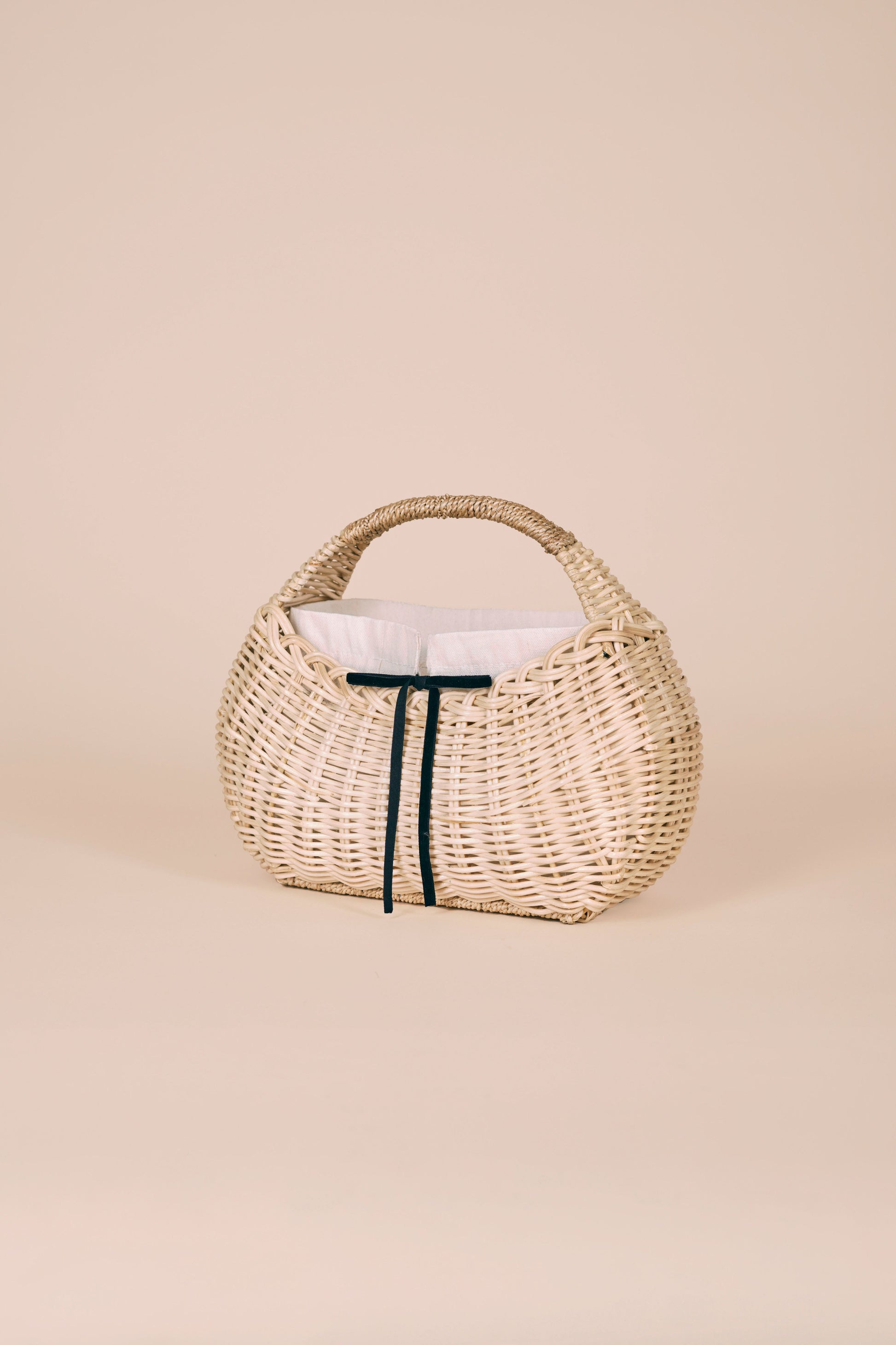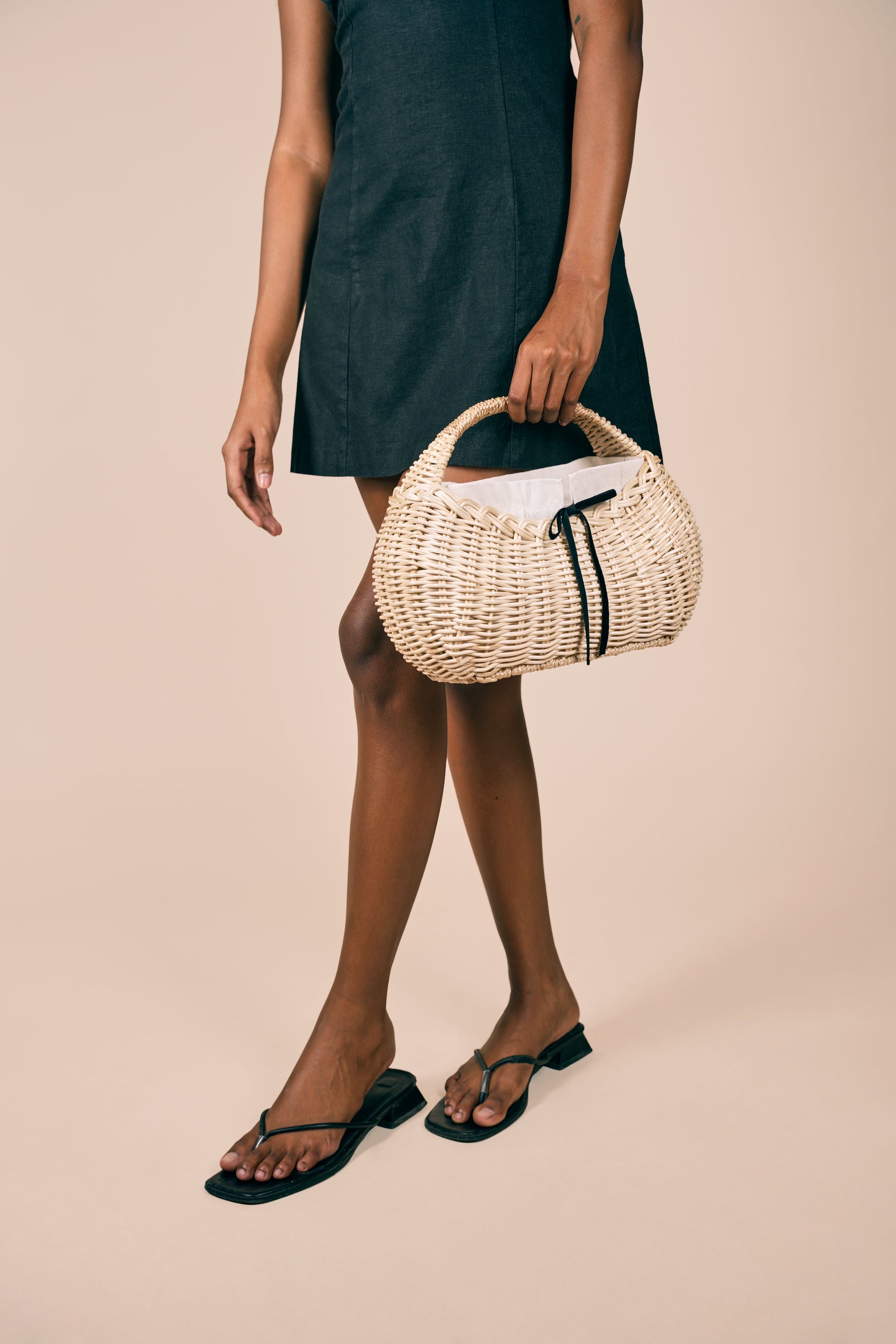 The Blanchett – a structured handbag made with rattan sourced from Davao and Palawan, handwoven in a plain Dutch weave and reinforced with a lightweight steel frame. Her handle is wrapped in abaca from Catanduanes.