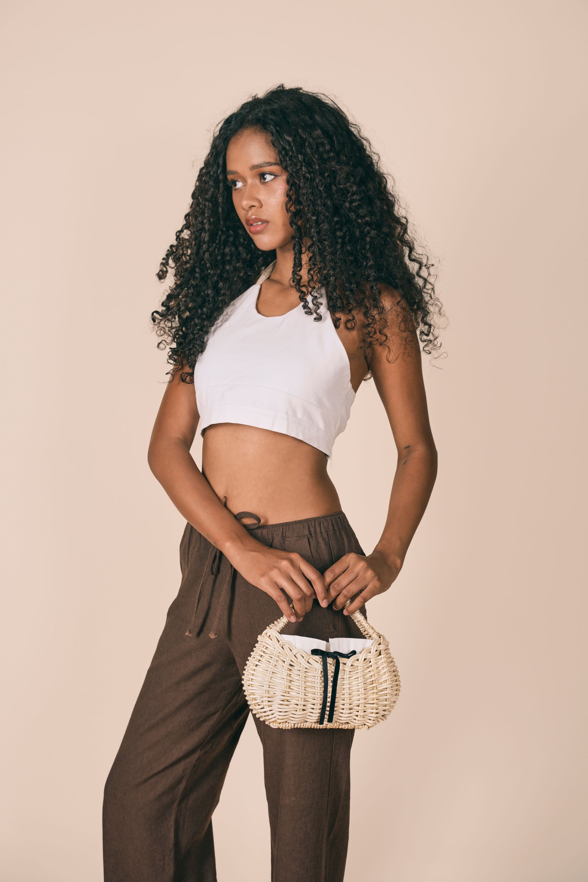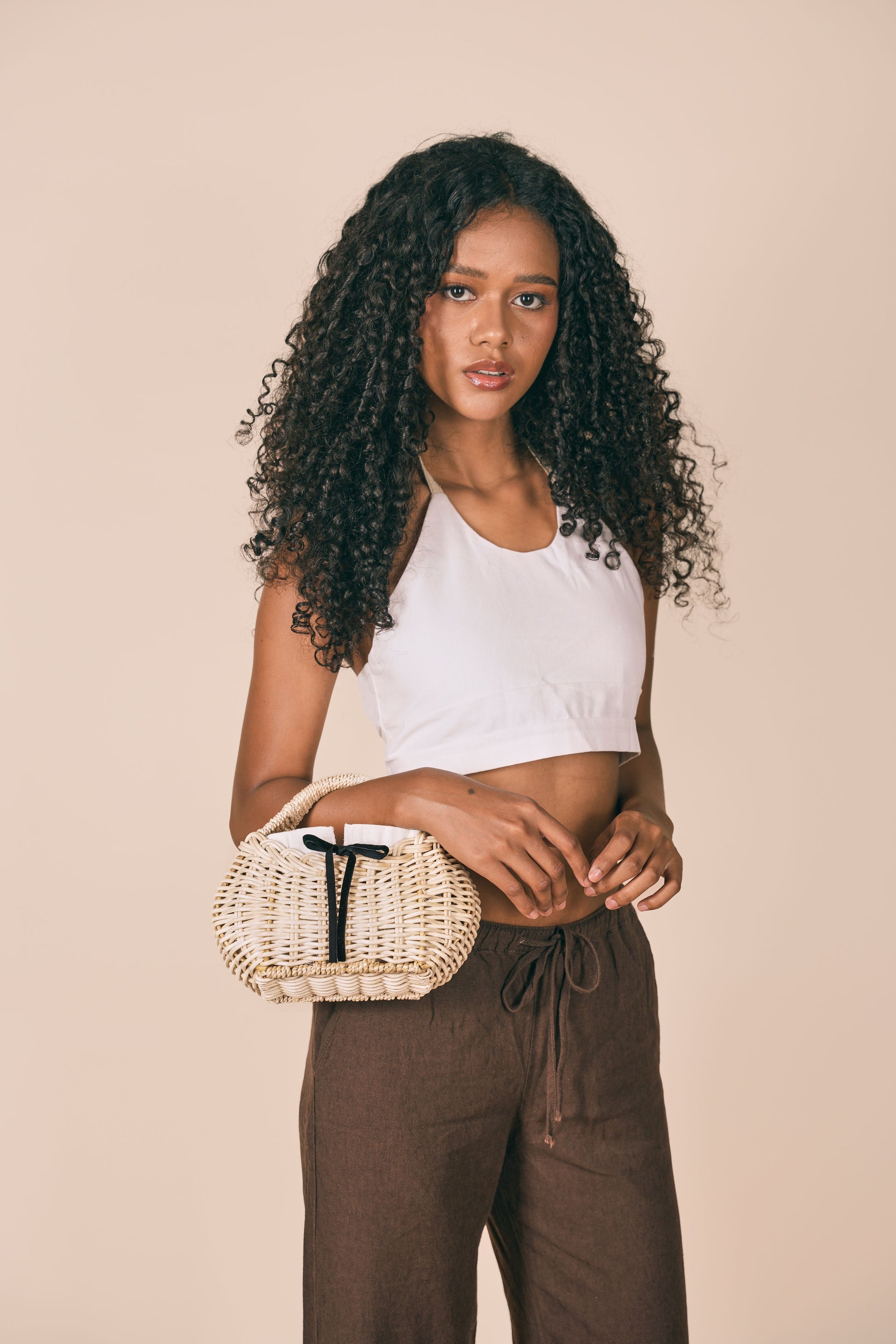 The Brigitte – a compact structured handbag made with rattan sourced from Davao and Palawan, handwoven in a plain Dutch weave and reinforced with a lightweight steel frame. Her handle is wrapped in abaca from Catanduanes.